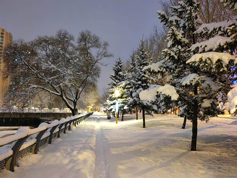 初冬銀裝素裹的傍晚